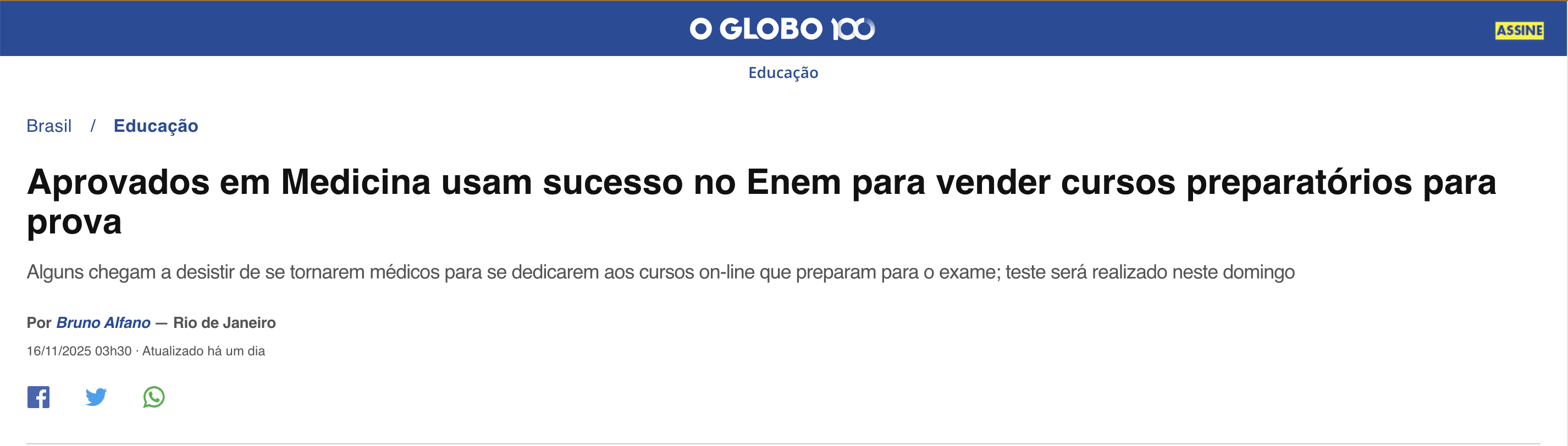 - Entrevista para o jornal O Globo, em 16/11/2025